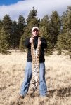 After shooting a few pics with the camera, Nicole looks at me and says "Can you shoot it?". Well hell.... actually I can! I'm just too dumbfounded by this fearless cat that I don't even consider the possibility and plus the rifle is behind the back seat and we've got the girls, the dog, etc and it seemed like a lost cause but hey, why not, right? I tell Nicole to try to lean the seat back and get into the back with the girls so she can get the rifle. She gets back there and this cat is STILL sitting there 30 feet from the truck!!! I'm meowing, squeaking, and whispering sweet nothings into her ear just hoping she'll stick around. Nicole comes back up to the front and has the rifle, but no magazine! Arghh... I had left it out after the stand I made and it was in my bag behind the seat. No way we're going to make this happen.